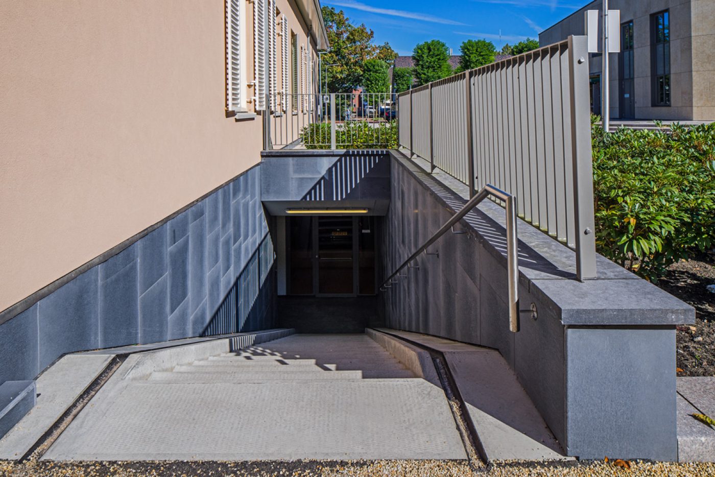 In dit project heeft Holonite bijgedragen met geïsoleerde gevelplinten, raamdorpels en maatwerk traptreden. De geïsoleerde gevelplinten geven de oudroze gevels niet alleen een statige look maar beschermen tegelijkertijd de kwetsbare voet van het gebouw. De lichtkleurige raamdorpels sluiten mooi aan bij de witte raamluiken. Tot slot maken de maatwerk traptreden het geheel af en zorgen voor een goede verbinding naar de ondergelegen parkeerkelder. Holonite heeft de traptreden voorzien van meegegoten anti-slipprofielen.
