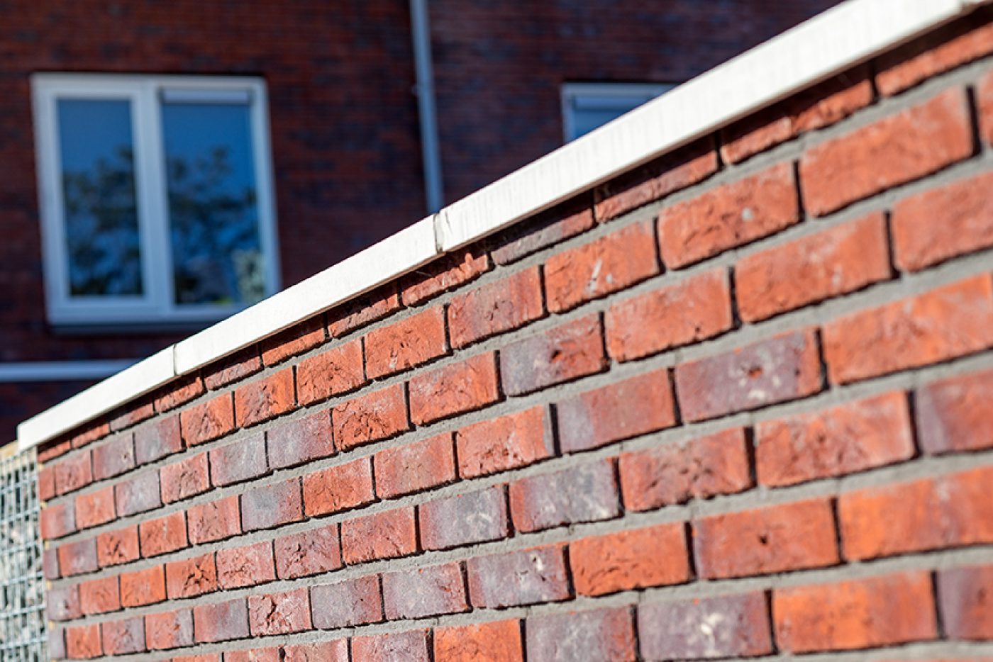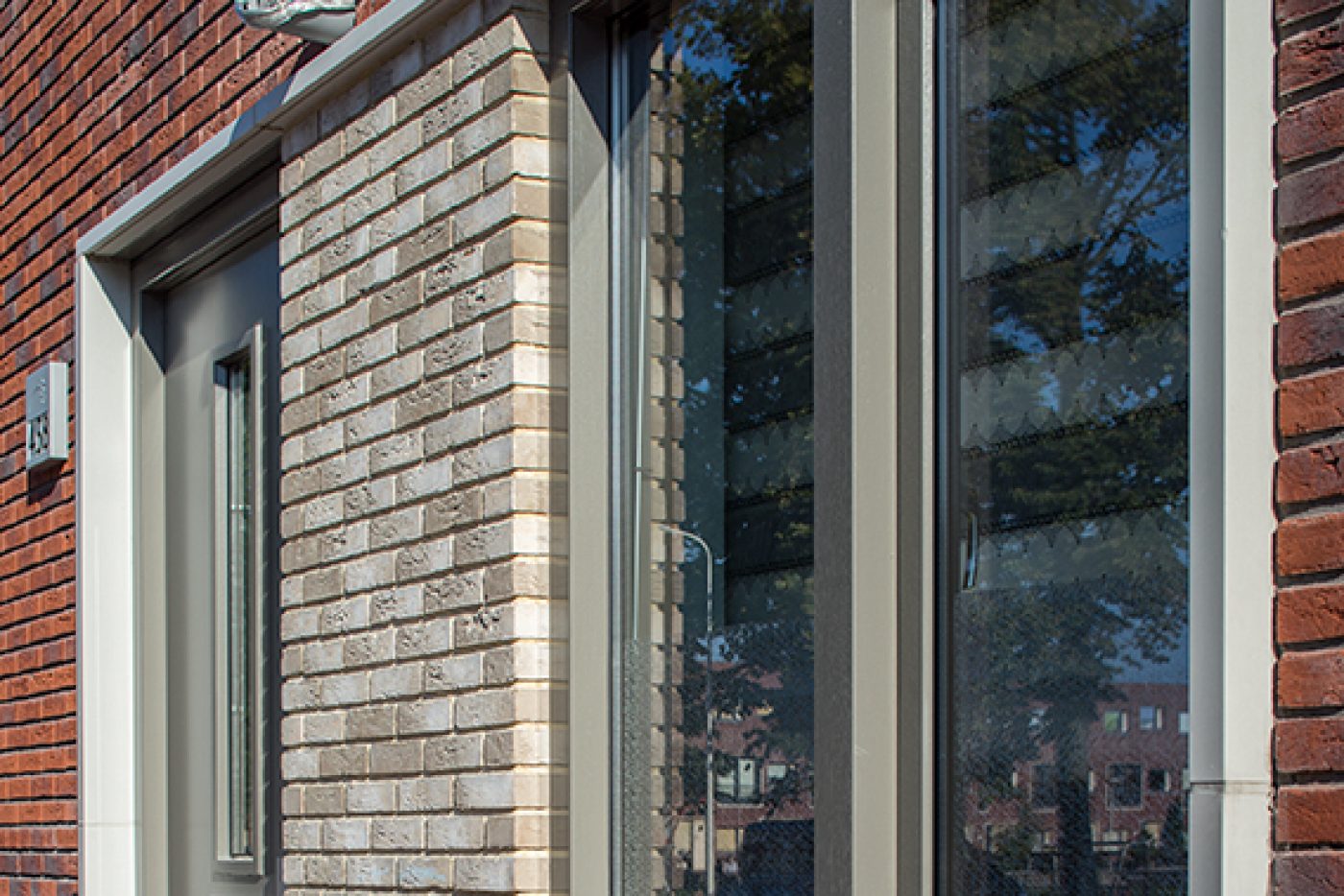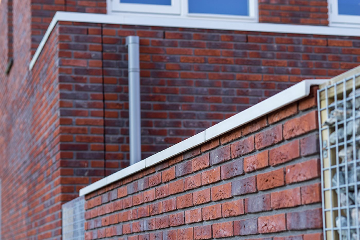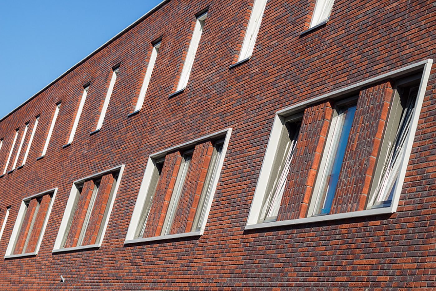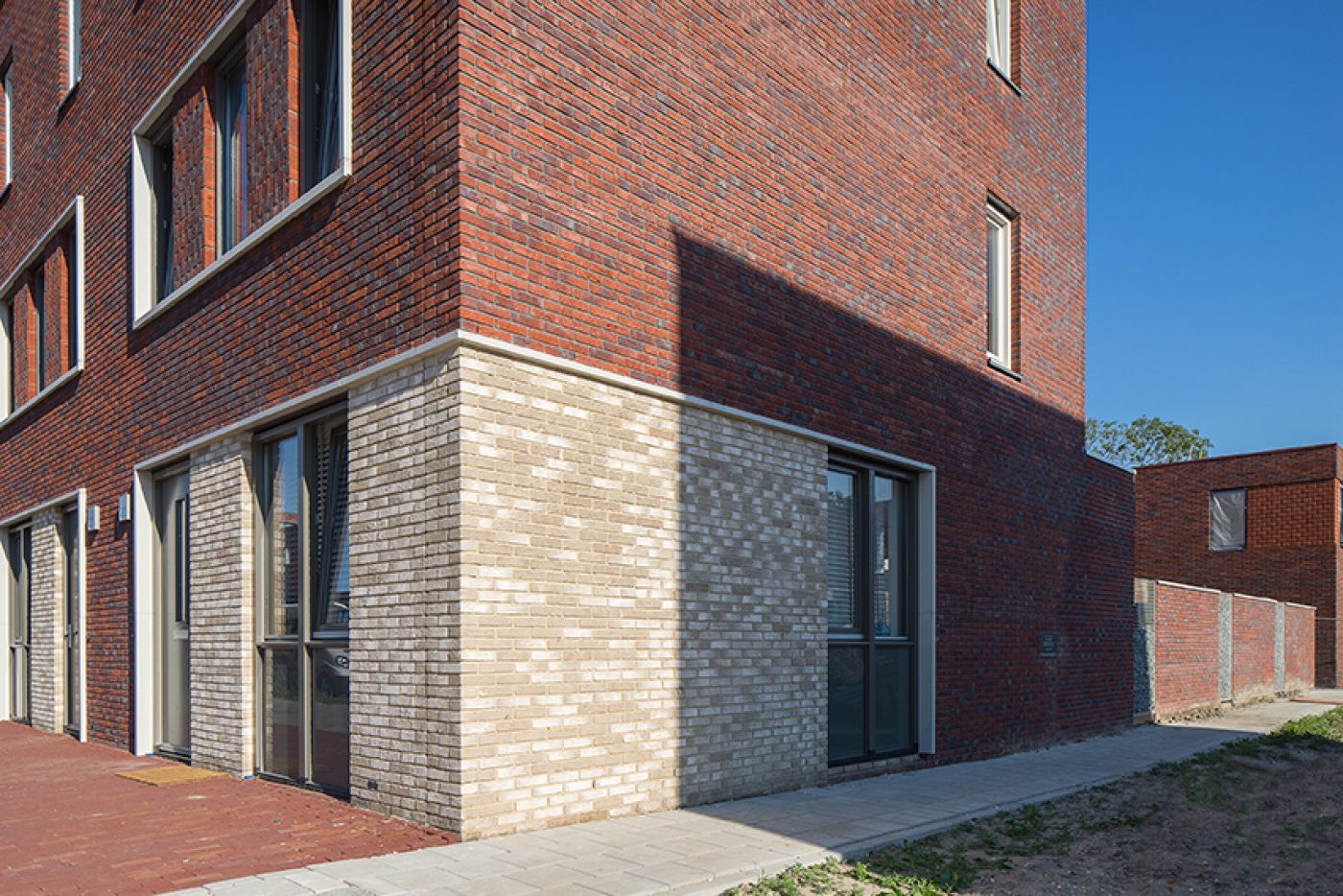 Holonite produceerde voor het project Lieverley witte kaders, muurafdekkers en spekbanden. Deze witte elementen vormen een mooi contrast in het bonte metselwerk.