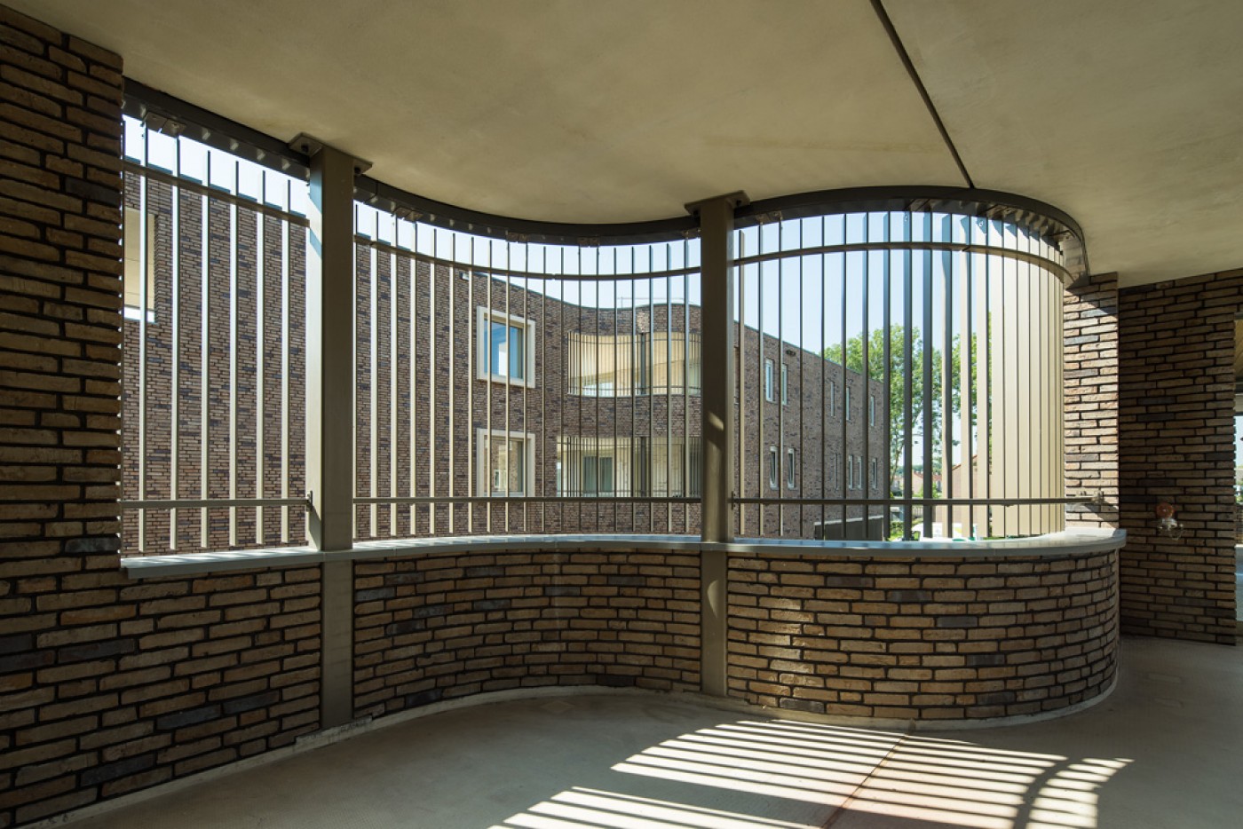 Het appartementencomplex is met een halfronde vorm ontworpen waardoor er een algemene binnenruimte voor bewoners en bezoekers is ontstaan. De gevels zijn voorzien van aluminium puien, brons en wit gekleurd metselwerk en zandkleurig prefab. Holonite heeft contrast aangebracht met licht gebogen muurafdekkers en raamdorpels in de kleur donkergrijs. Het geheel vormt een dynamisch gebouw waarin alle faciliteiten voor de bewoners geborgd zijn.