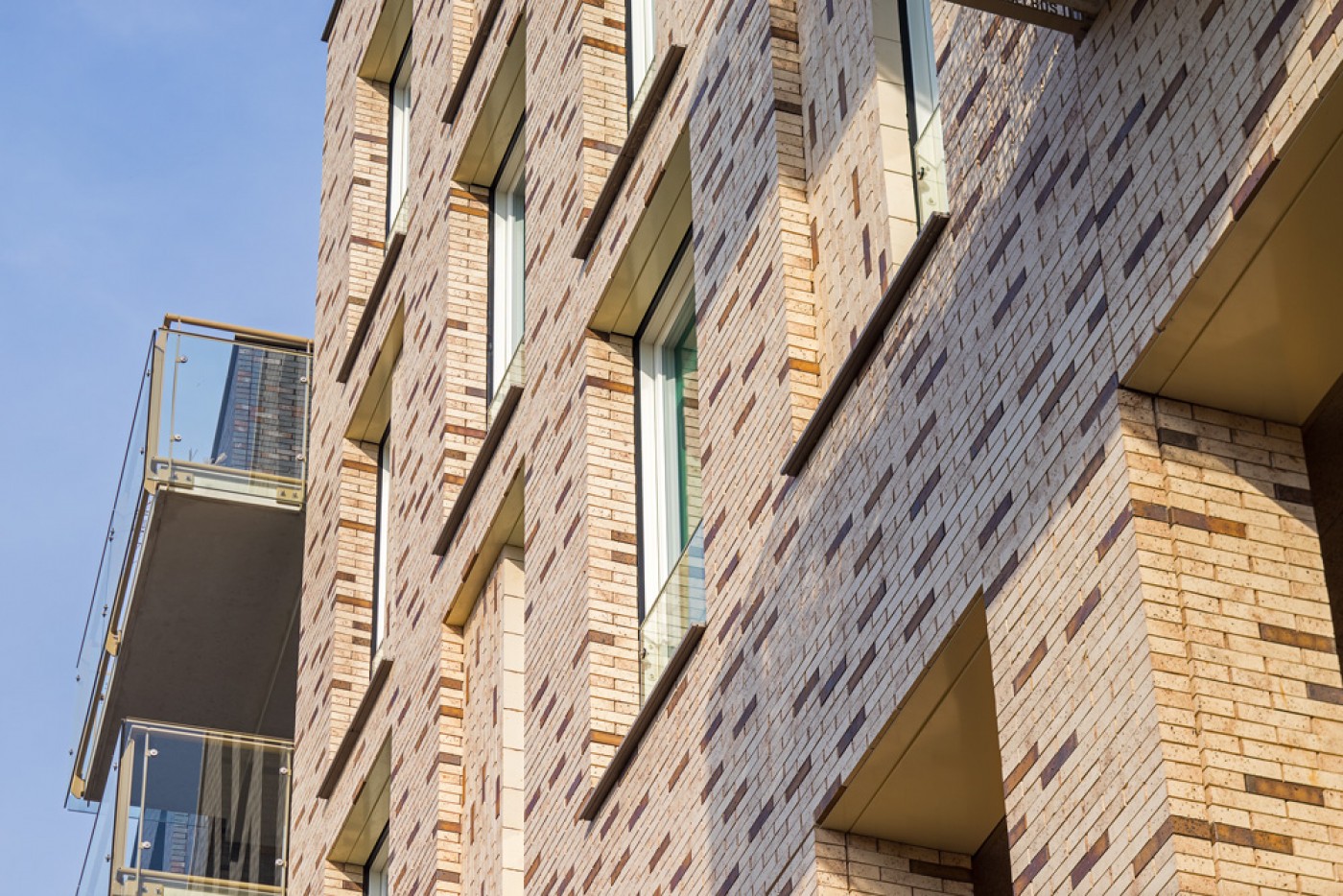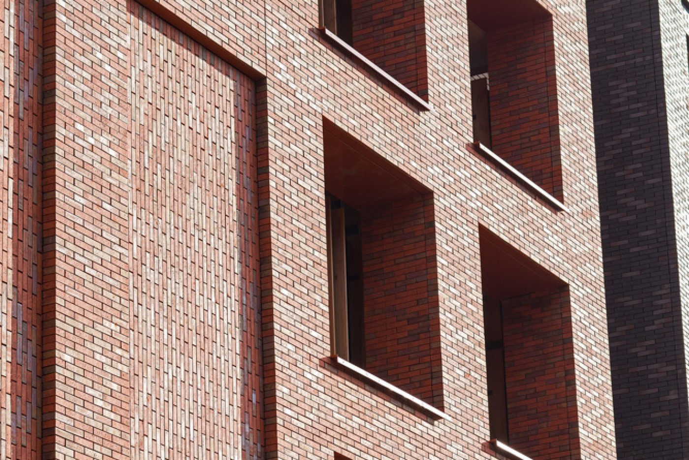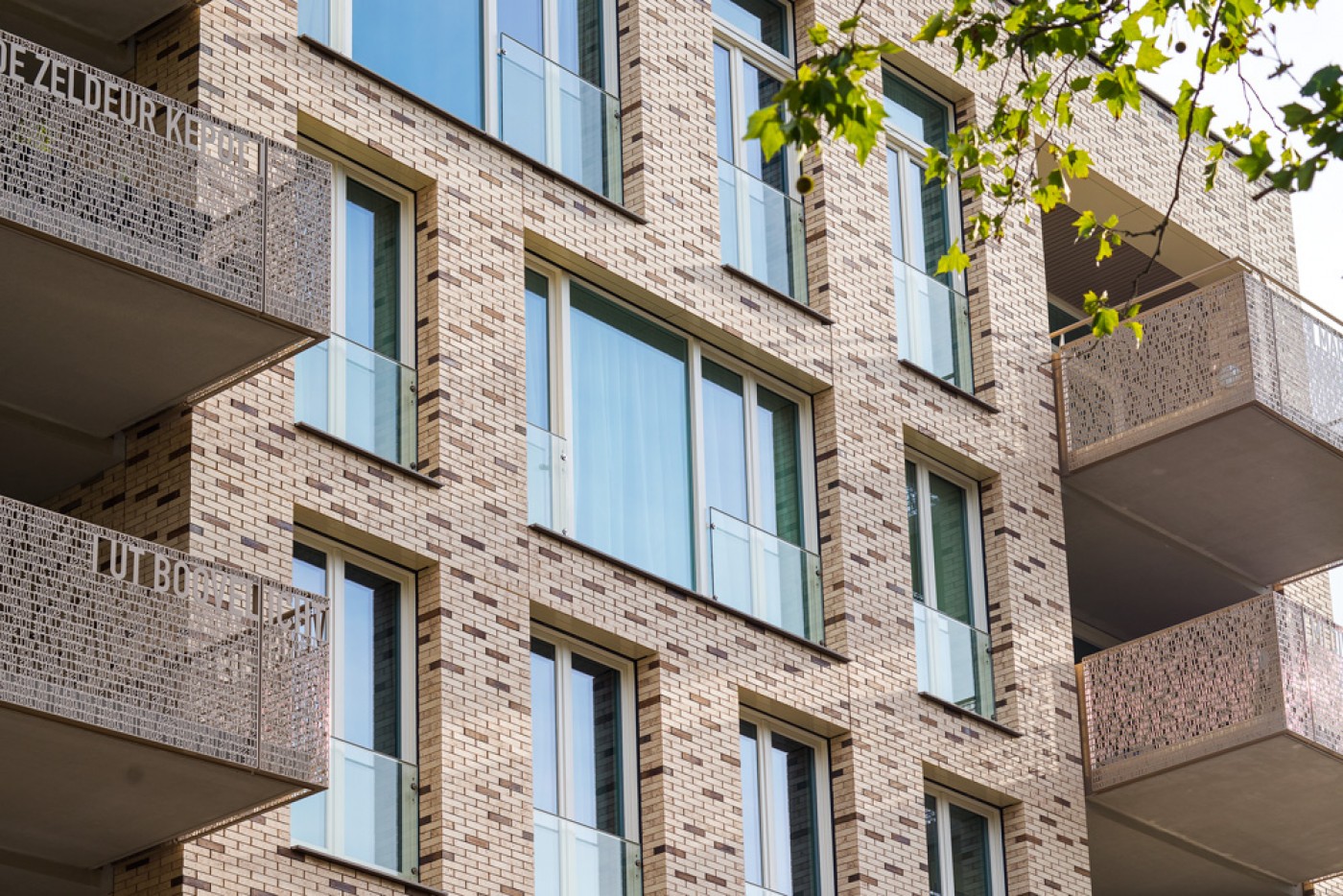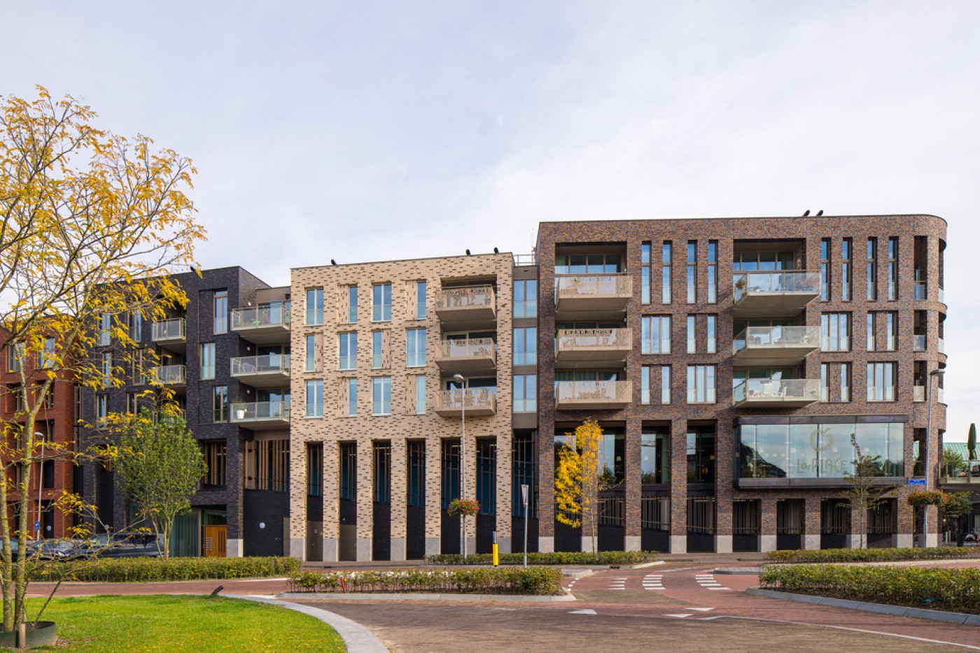 Holonite heeft in dit project bij kunnen dragen met standaard muurafdekkers en raamdorpels maar ook met speciaal voor dit project geproduceerde, gebogen muurafdekkers en raamdorpels. De maatwerk elementen sluiten exact aan op de vormen van het dynamische gebouw. Ook heeft Holonite het gebouw mogen voorzien van omkaderingen bij de lift en de trappenhuizen in de kleur Bruingrijs (23).