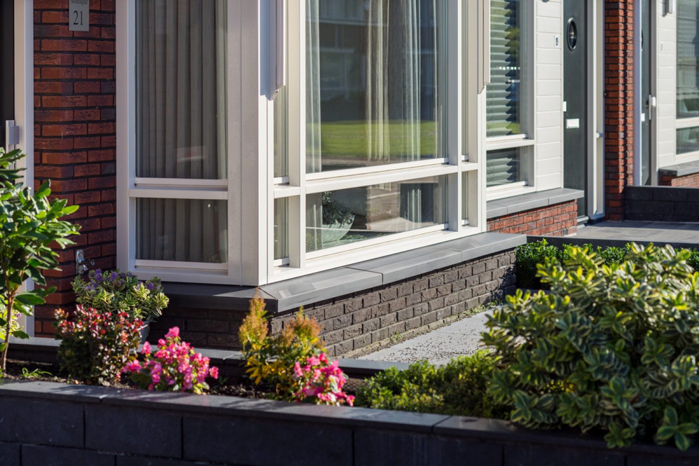 Holonite heeft in dit project bijgedragen met Premax dorpels, spekbanden en raamdorpels. De raamdorpels zijn zowel recht als in hoekvorm aangebracht bij de erkers en de raampartijen. De spekbanden lopen speels door over de gehele rij woningen wat het ontwerp van één gebouw met daarin versmolten meerdere woningen volledig versterkt.