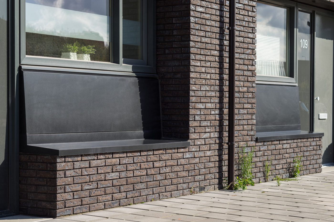 Holonite heeft in dit project de 16 koop-gezinswoningen aangekleed met op maat gemaakte bankjes die volledig geïntegreerd zijn in de gevel. Het woongebouw is hiermee uniek en onderscheidend ten opzichte van standaard eengezinswoningen. Bewoners kunnen zo aan de voorkant van hun woning een paar zonnestralen meepakken of het bankje benutten in de vorm van een vensterbank om het straatbeeld te verfraaien.